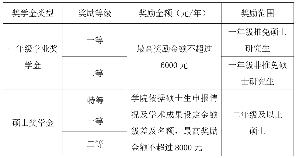 2022级、2023级硕士分为特等学业奖学金、一等学业奖学金与二等学业奖学金。